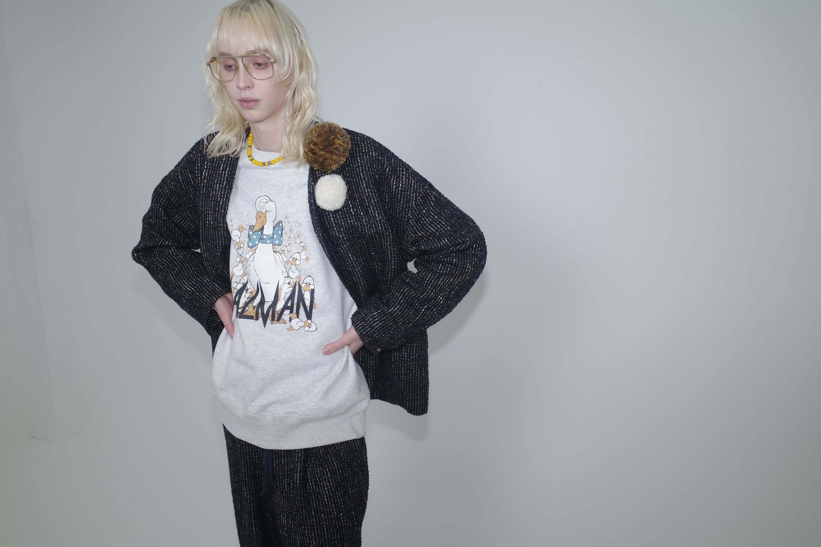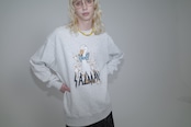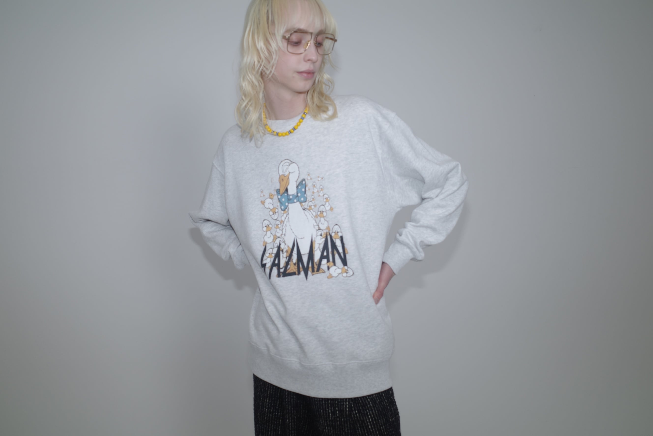 【DESIGN】ヴィンテージスウェットを元ネタにしたアヒル親子のグラフィックがチャーミングなスウェットシャツ。程よいワイドシルエットと太番手のステッチワークなど本格的なディティールが特徴です。【FABRIC】コットン100%の上質な裏毛素材を使用。生地感はふっくら、裏糸のパイルは通常よりも太い糸を編み込み重厚感ある生地でどこかクラシックな佇まいが特徴です。また、洗濯後の縮率を軽減させるため、生地水洗いとタンブル乾燥を製造行程で施した「プリシュランクファブリック」を採用しています。